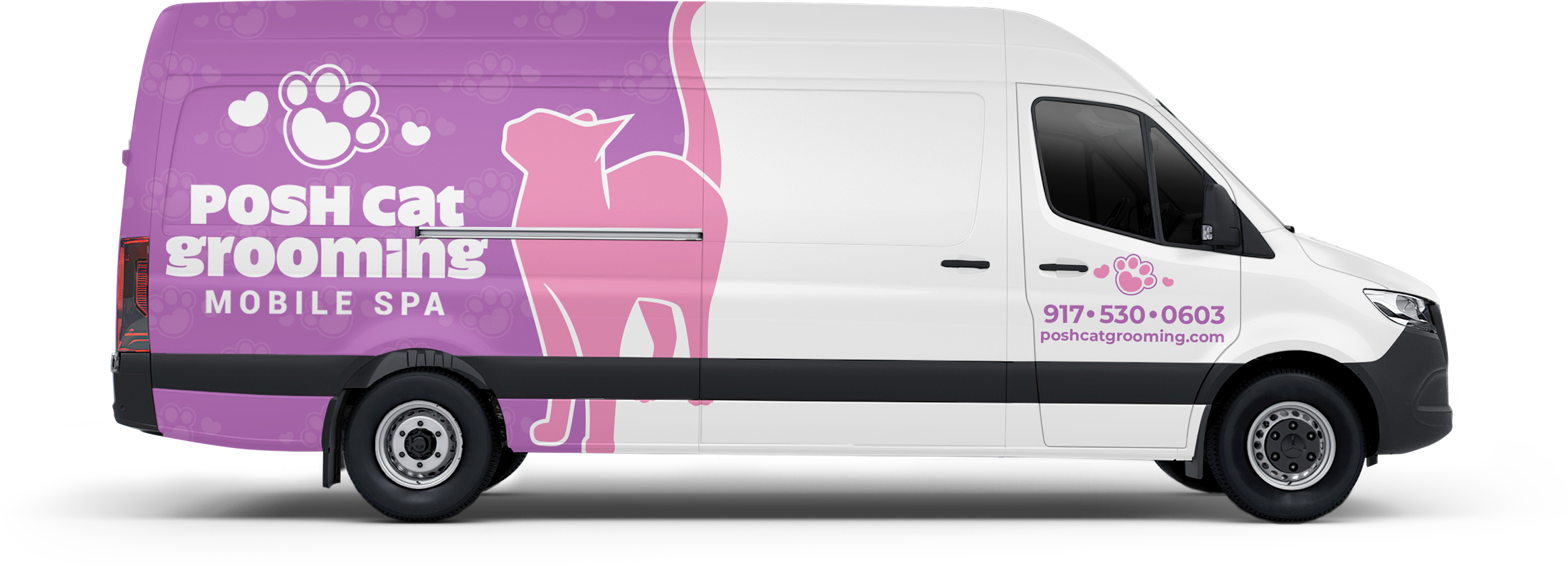 Cat groomer arrives and parks mobile grooming van by your house
