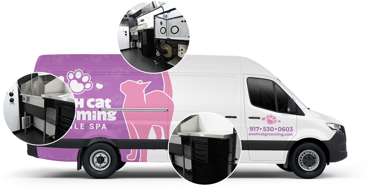 With our Cat Van, your feline friend enjoys a safe, calm, and luxurious grooming experience from start to finish.